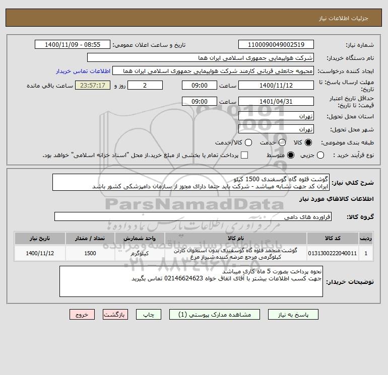 نام دستگاه خریدار:شرکت هواپیمایی جمهوری اسلامی ایران هما