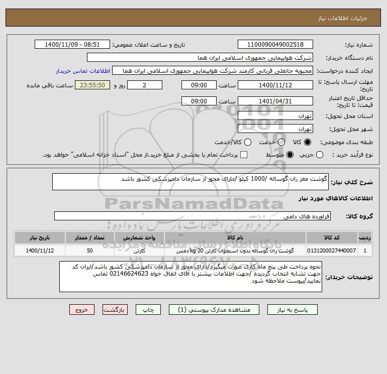 نام دستگاه خریدار:شرکت هواپیمایی جمهوری اسلامی ایران هما