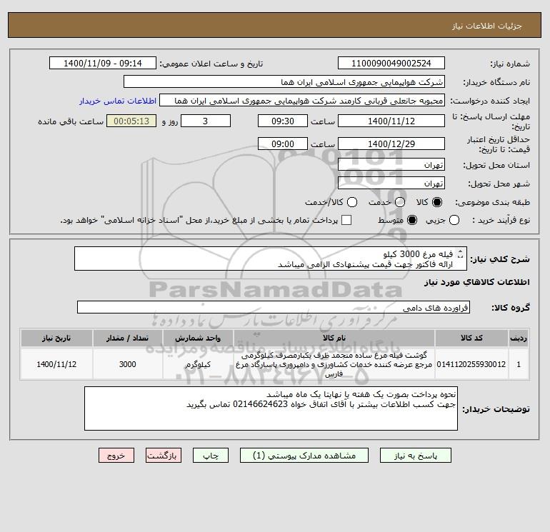 استعلام فیله مرغ 3000 کیلو ارائه فاکتور جهت قیمت پیشنهادی الزامی میباشد شرکت باید حتما دارای مجوز از سازمان دامپزشکی کشور باشد , استعلام فیله مرغ 3000 کیلو ارائه فاکتور جهت قیمت پیشنهادی الزامی میباشد شرکت باید حتما دارای مجوز از سازمان دامپزشکی کشور باشد