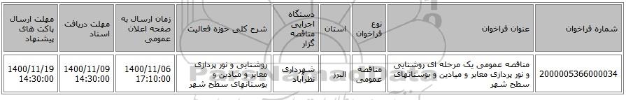 مناقصه، مناقصه عمومی یک مرحله ای روشنایی و نور پردازی معابر و میادین و بوستانهای سطح شهر , مناقصه عمومی یک مرحله ای روشنایی و نور پردازی معابر و میادین و بوستانهای سطح شهر