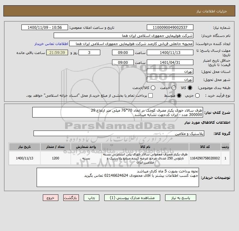 نام دستگاه خریدار:شرکت هواپیمایی جمهوری اسلامی ایران هما