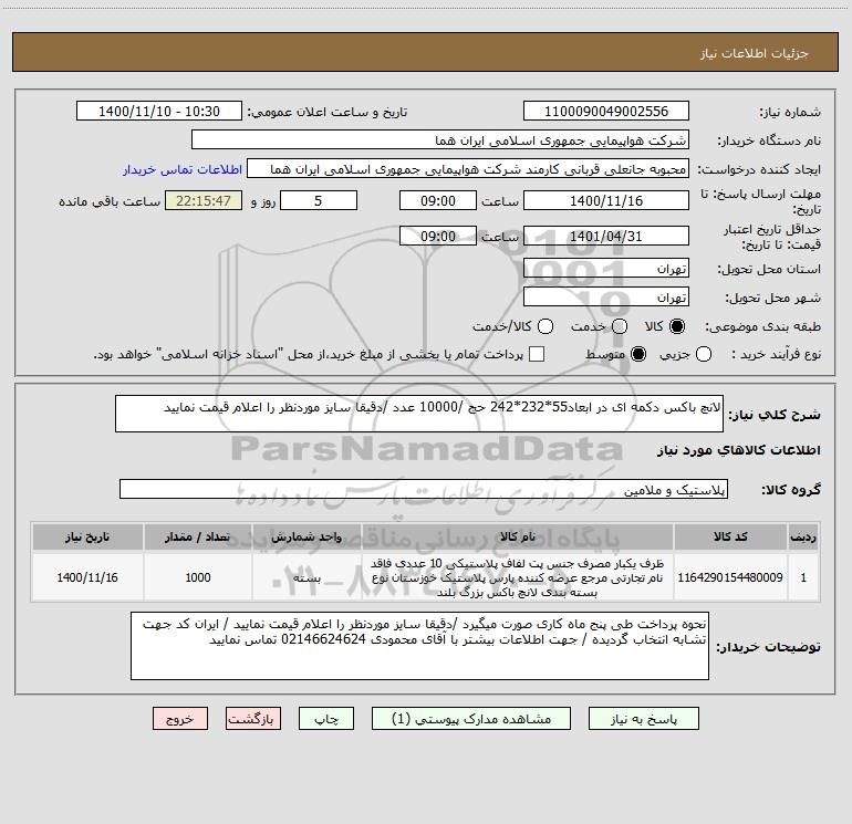 نام دستگاه خریدار:شرکت هواپیمایی جمهوری اسلامی ایران هما