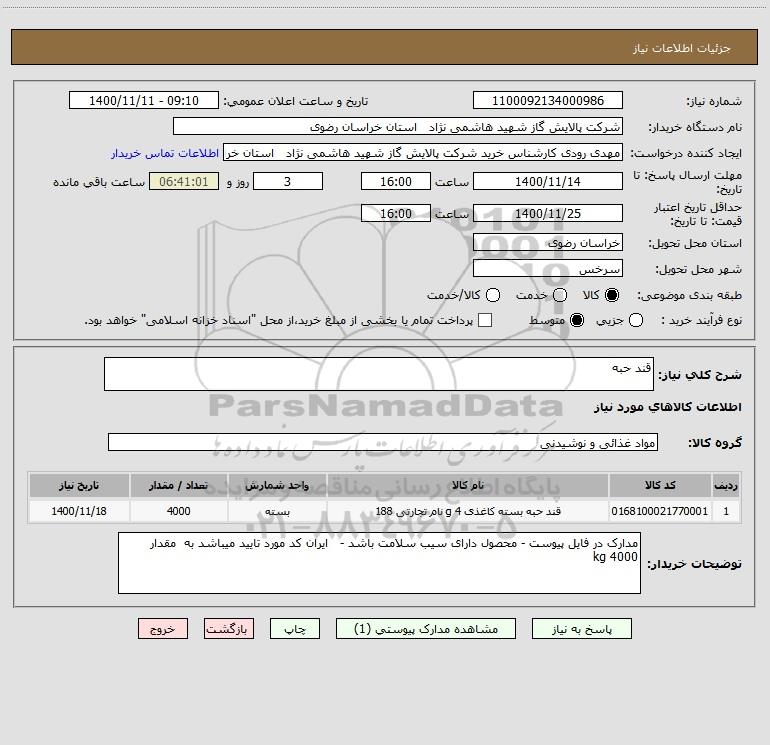 نام دستگاه خریدار:شرکت پالایش گاز شهید هاشمی نژاد استان خراسان رضوی