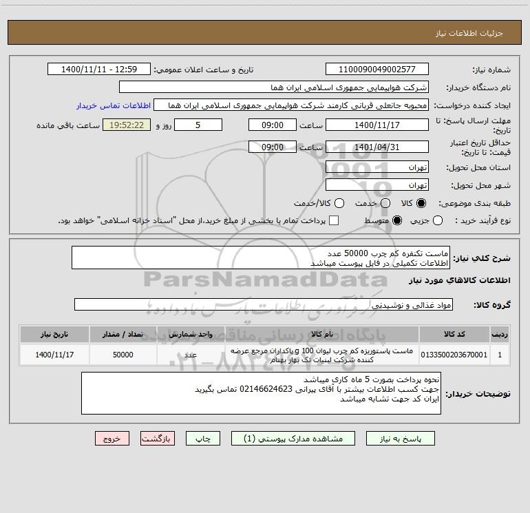 نام دستگاه خریدار:شرکت هواپیمایی جمهوری اسلامی ایران هما