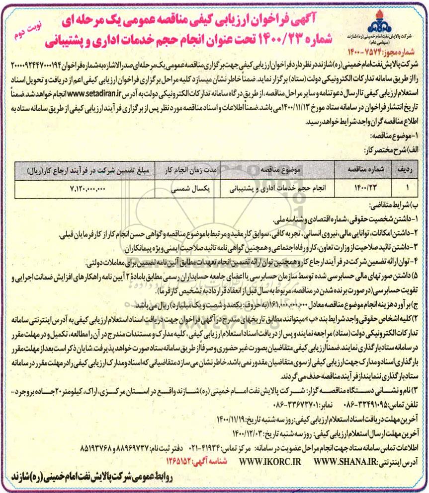 شماره 1400.23  تحت عنوان انجام خدمات اداری و پشتیبانی