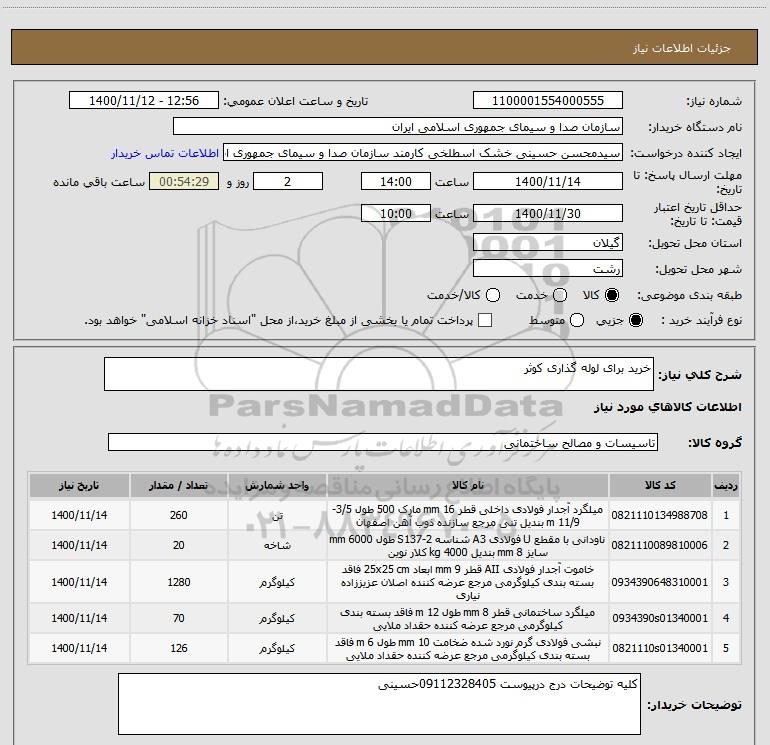 شرح کلی نیاز: خرید برای لوله گذاری کوثر