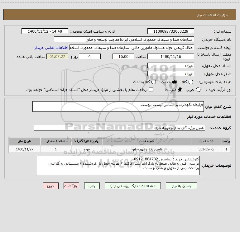 شرح کلی نیاز: قرارداد نگهداری بر اساس لیست پیوست