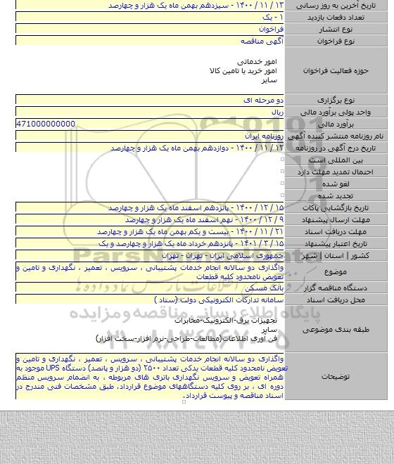 برای شرکت در مناقصه حتما از تصویر آگهی در سایت پارس نماد داده ها استفاده نمایید