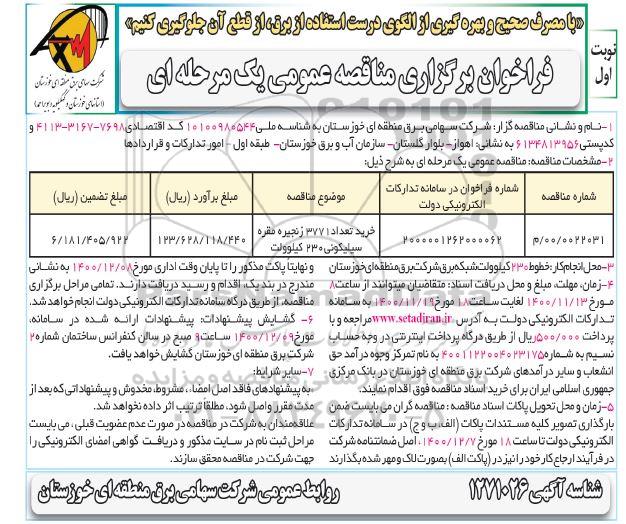 1. نام و نشانی مناقصه گزار: شرکت سهامی برق منطقه ای خوزستان به شناسه ملی