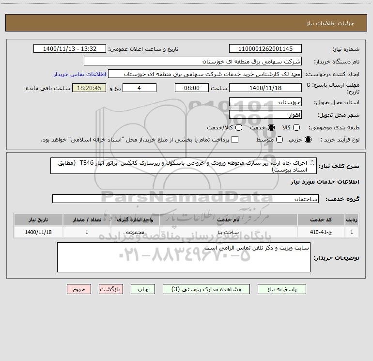 استعلام اجرای چاه ارت، زیر سازی محوطه ورودی و خروجی باسکول و زیرسازی کانکس اپراتور انبار TS46 (مطابق اسناد پیوست) تهیه کلیه مصالح بر عهده پیمانکار است, استعلام اجرای چاه ارت، زیر سازی محوطه ورودی و خروجی باسکول و زیرسازی کانکس اپراتور انبار TS46 (مطابق اسناد پیوست) تهیه کلیه مصالح بر عهده پیمانکار است