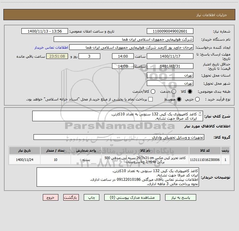 نام دستگاه خریدار:شرکت هواپیمایی جمهوری اسلامی ایران هما