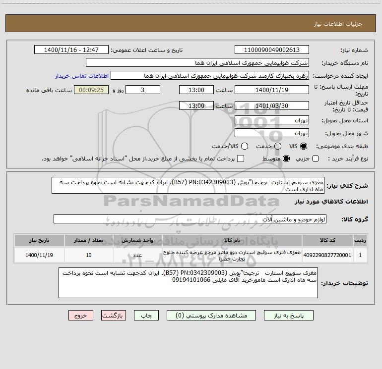 نام دستگاه خریدار:شرکت هواپیمایی جمهوری اسلامی ایران هما