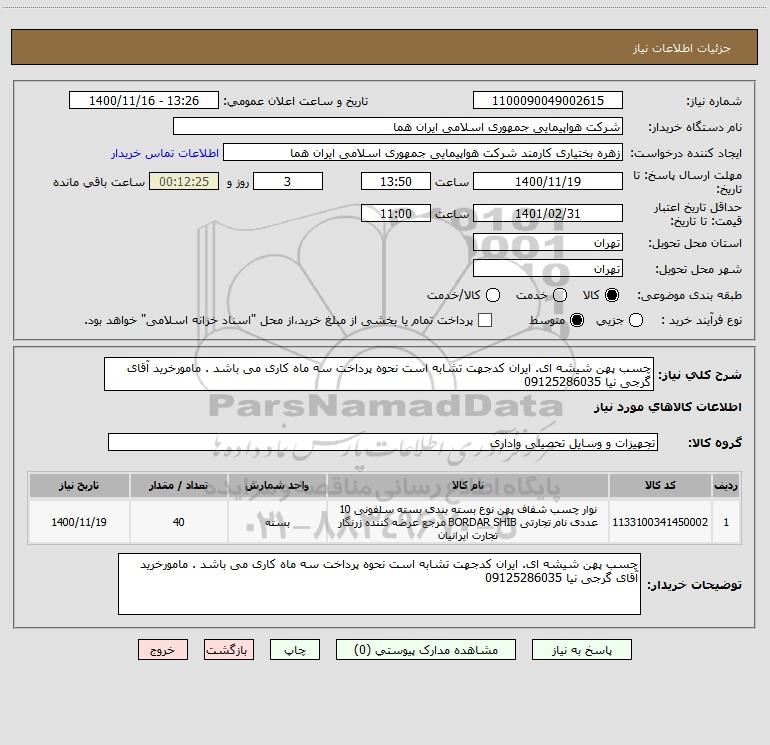 نام دستگاه خریدار:شرکت هواپیمایی جمهوری اسلامی ایران هما