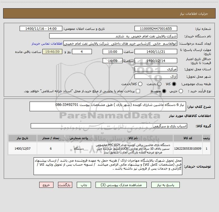 نام دستگاه خریدار:شرکت پالایش نفت امام خمینی ره شازند
