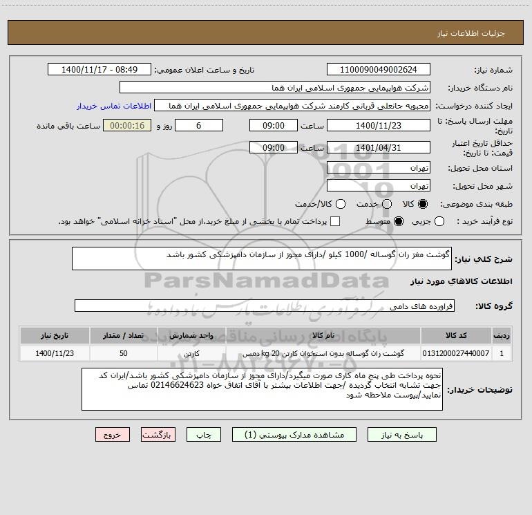 نام دستگاه خریدار:شرکت هواپیمایی جمهوری اسلامی ایران هما