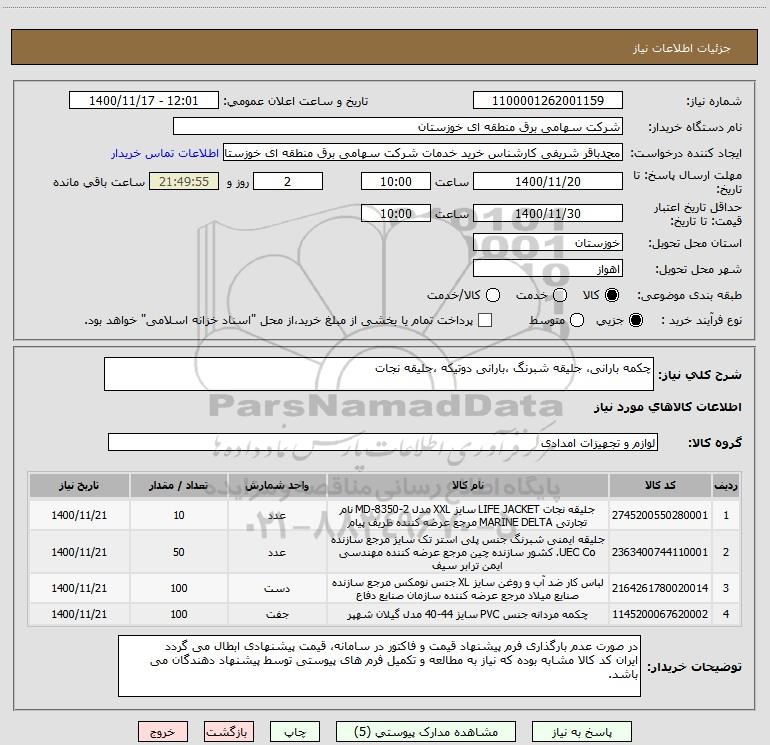 نام دستگاه خریدار:شرکت سهامی برق منطقه ای خوزستان