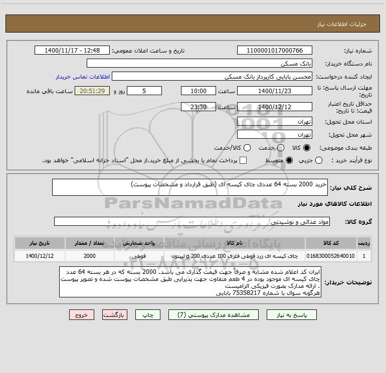 شرح کلی نیاز: خرید 2000 بسته 64 عددی چای کیسه ای (طبق قرارداد و مشخصات پیوست)