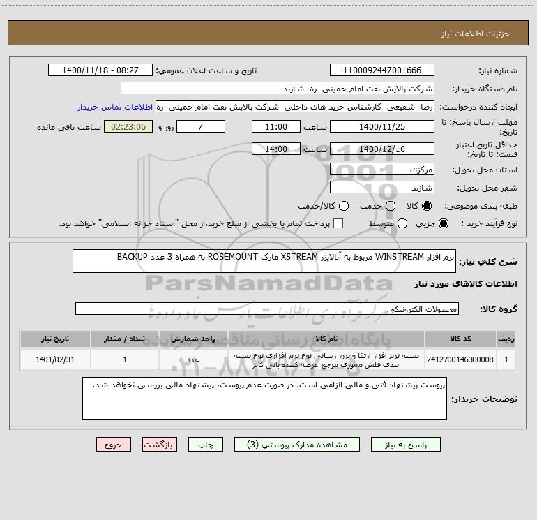 شرح کلی نیاز: نرم افزار WINSTREAM مربوط به آنالایزر XSTREAM مارک ROSEMOUNT به همراه 3 عدد BACKUP
