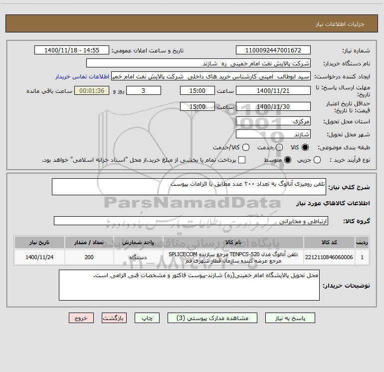 نام دستگاه خریدار:شرکت پالایش نفت امام خمینی ره شازند