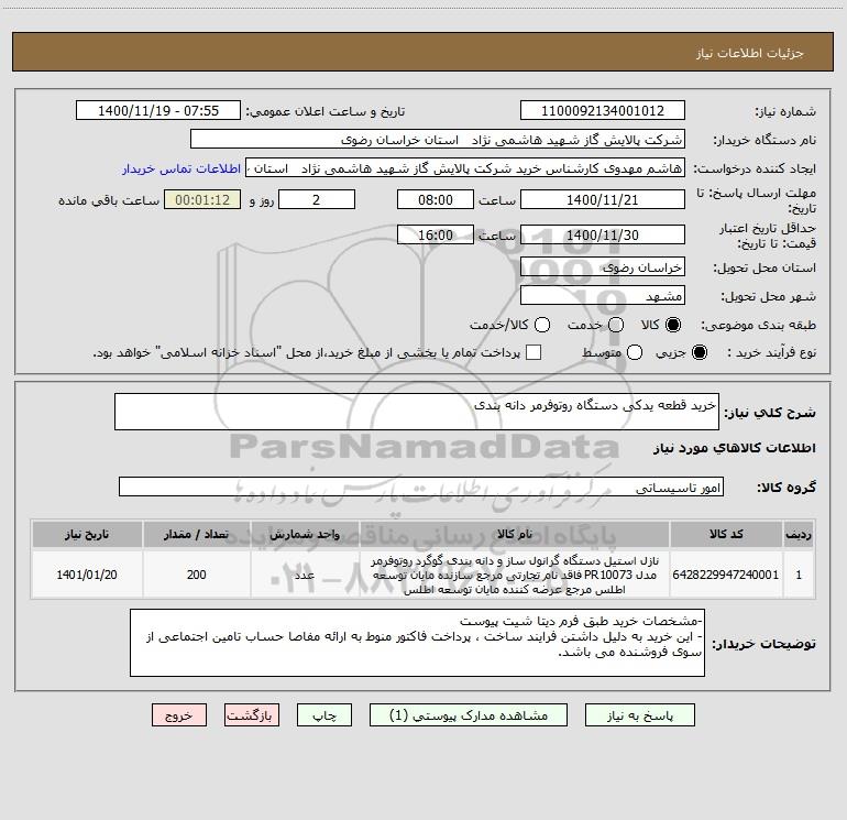شرح کلی نیاز: خرید قطعه یدکی دستگاه روتوفرمر دانه بندی