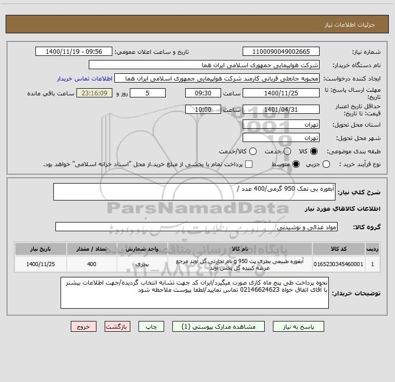 نام دستگاه خریدار:شرکت هواپیمایی جمهوری اسلامی ایران هما
