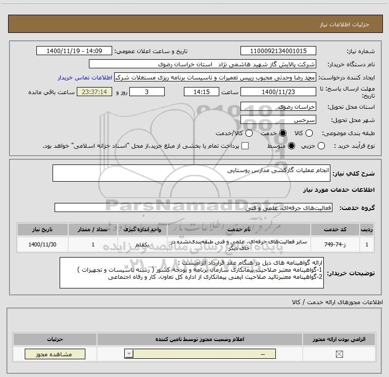 نام دستگاه خریدار:شرکت پالایش گاز شهید هاشمی نژاد استان خراسان رضوی