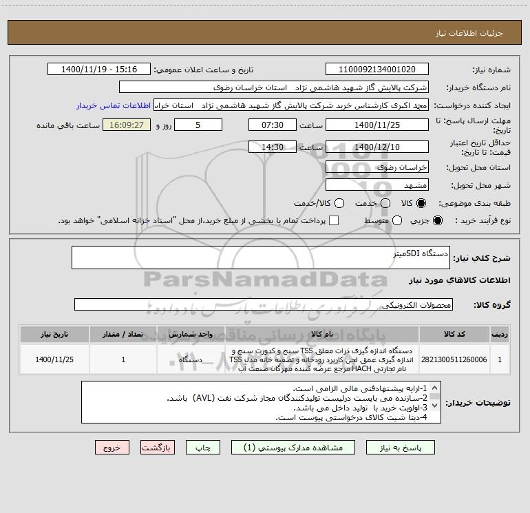 شرح کلی نیاز: دستگاه SDIمیتر