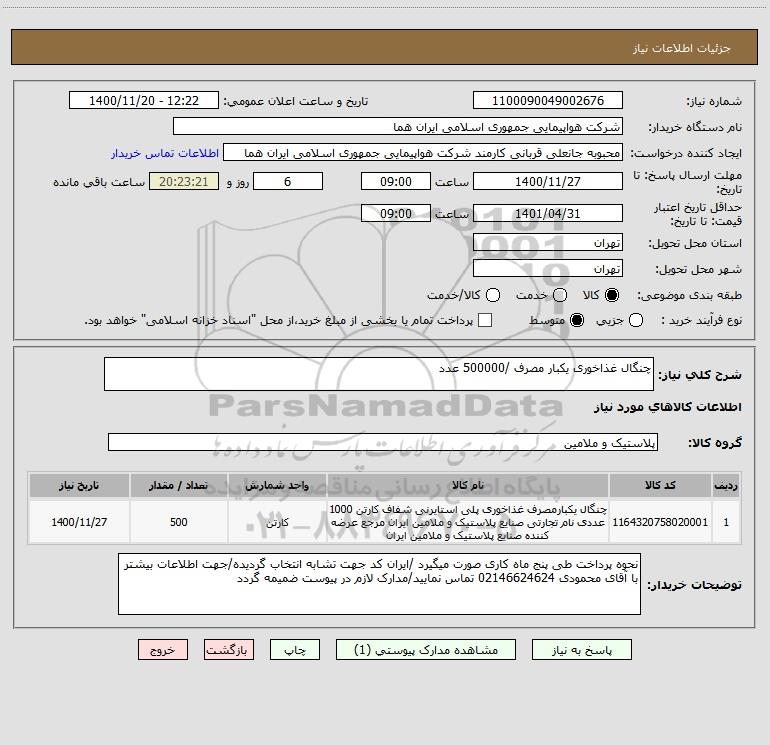 شرح کلی نیاز: چنگال غذاخوری یکبار مصرف /500000 عدد