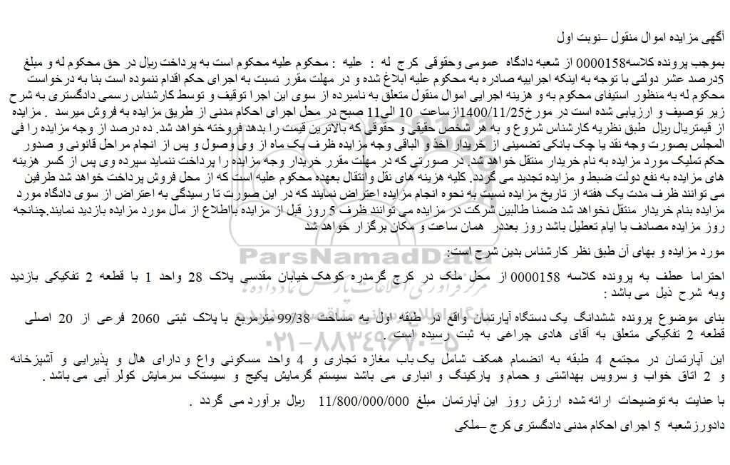 دادورزشعبه  5 اجرای احکام مدنی دادگستری کرج –ملکی