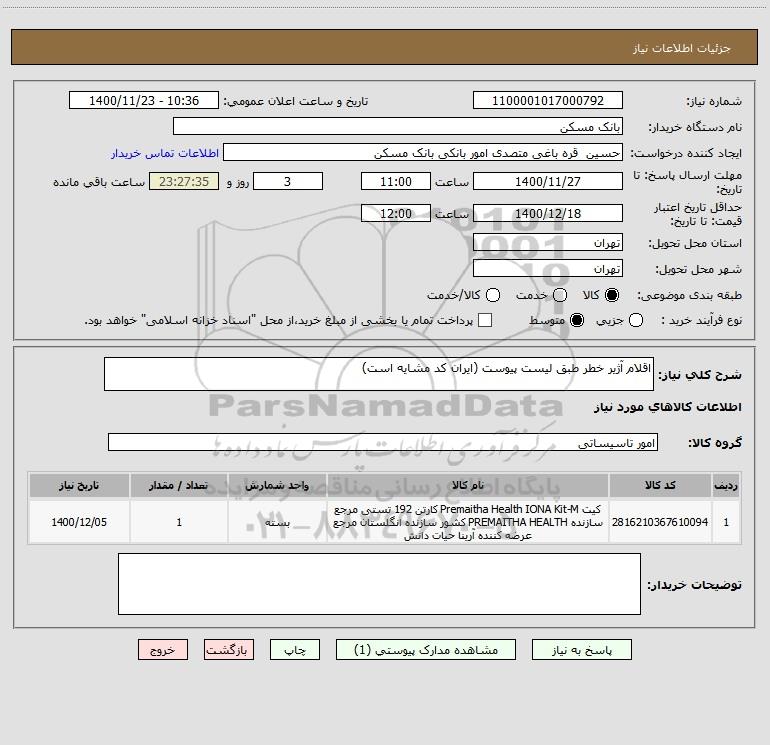شرح کلی نیاز: اقلام آژیر خطر طبق لیست پیوست (ایران کد مشایه است)