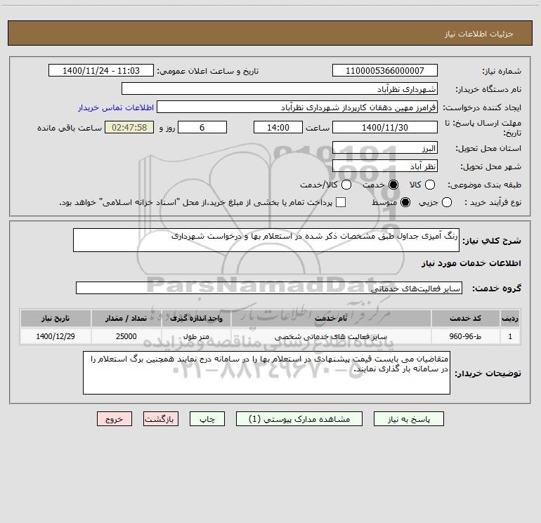 شرح کلی نیاز: رنگ آمیزی جداول طبق مشخصات ذکر شده در استعلام بها و درخواست شهرداری