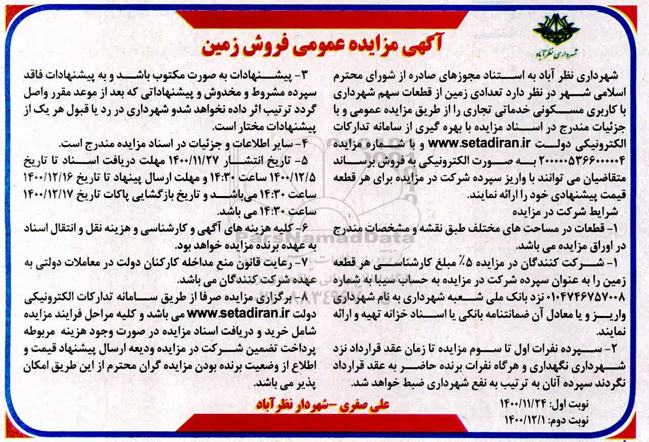 مزایده فروش تعدادی زمین به کاربری مسکونی , مزایده فروش تعدادی زمین به کاربری مسکونی