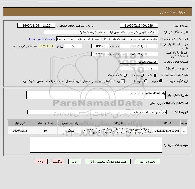 شرح کلی نیاز: راد 4140 مطابق ایندنت پیوست