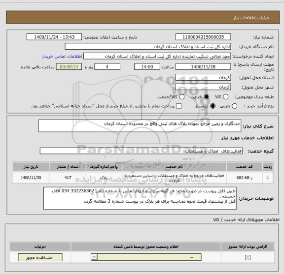شرح کلی نیاز: حدنگاری و زمین مرجع نمودن پلاک های ثبتی واقع در محدوده استان کرمان