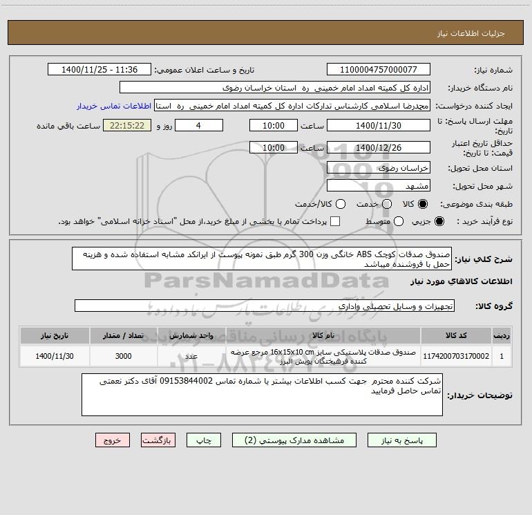 نام دستگاه خریدار:اداره کل کمیته امداد امام خمینی ره استان خراسان رضوی