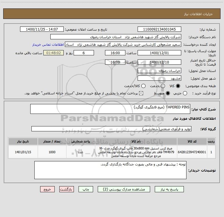 نام دستگاه خریدار:شرکت پالایش گاز شهید هاشمی نژاد استان خراسان رضوی