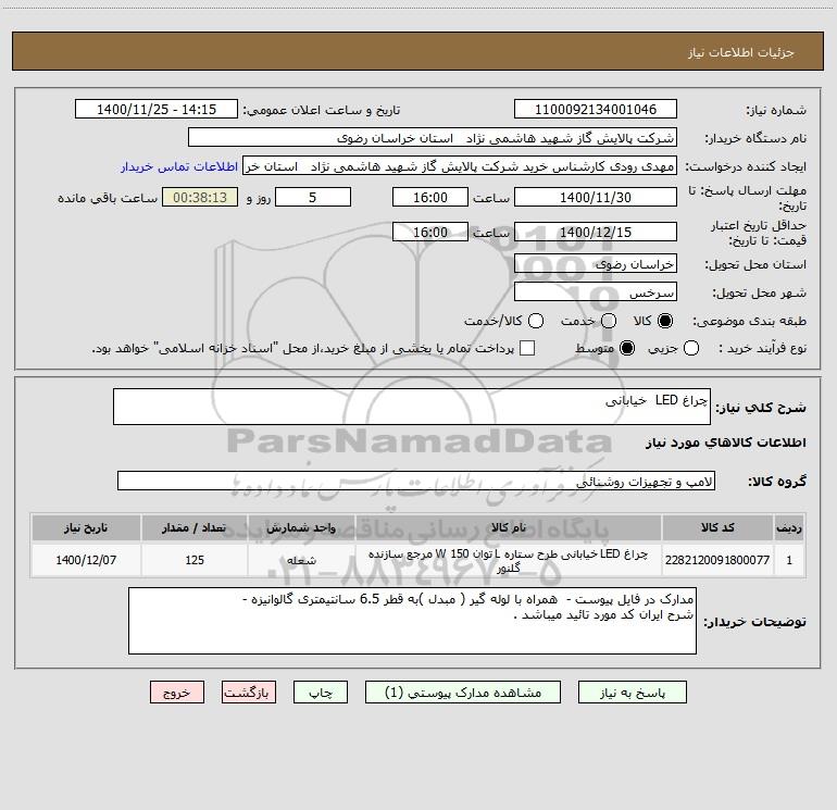نام دستگاه خریدار:شرکت پالایش گاز شهید هاشمی نژاد استان خراسان رضوی