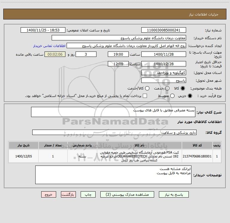 نام دستگاه خریدار:معاونت درمان دانشگاه علوم پزشکی یاسوج