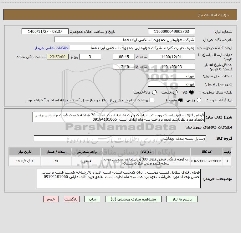 نام دستگاه خریدار:شرکت هواپیمایی جمهوری اسلامی ایران هما