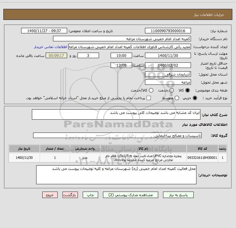 نام دستگاه خریدار:کمیته امداد امام خمینی شهرستان مراغه