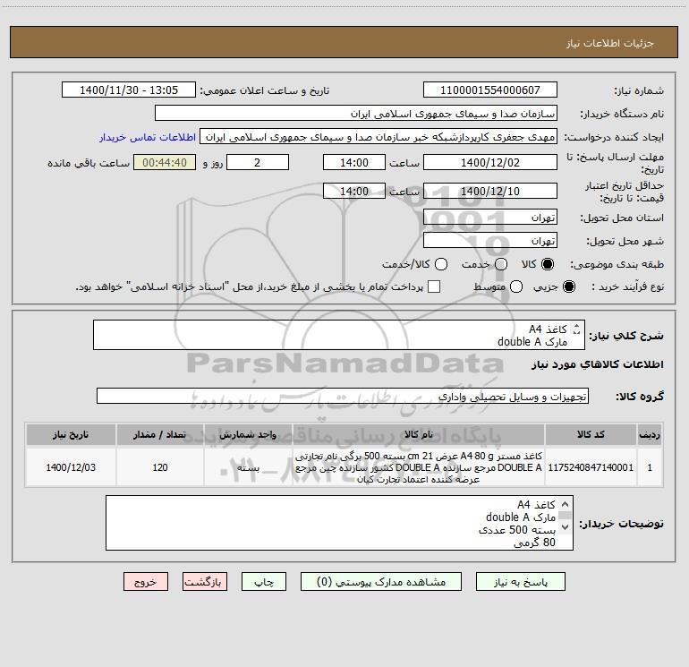 نام دستگاه خریدار:سازمان صدا و سیمای جمهوری اسلامی ایران