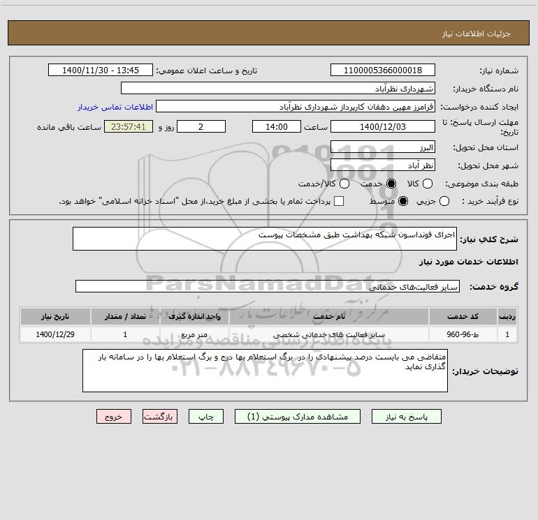 شرح کلی نیاز: اجرای فونداسون شبکه بهداشت طبق مشخصات پیوست