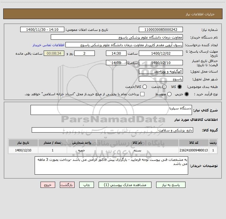 نام دستگاه خریدار:معاونت درمان دانشگاه علوم پزشکی یاسوج