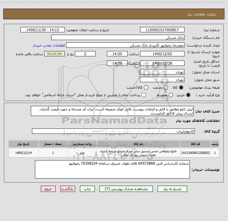 نام دستگاه خریدار:بانک مسکن