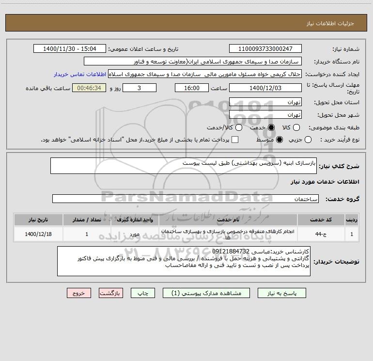 نام دستگاه خریدار: سازمان صدا و سیمای جمهوری اسلامی ایران(معاونت توسعه و فناور
