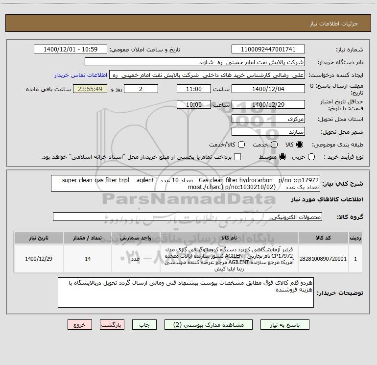 نام دستگاه خریدار:شرکت پالایش نفت امام خمینی ره شازند