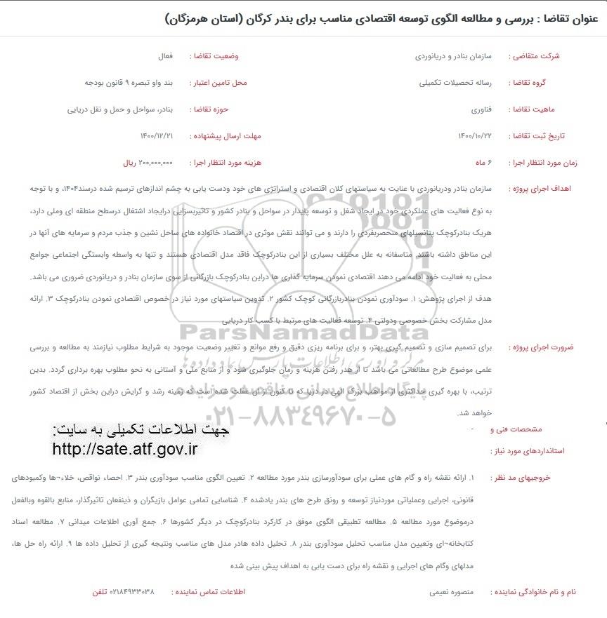 شرکت متقاضی: سازمان بنادر و دریانوردی
