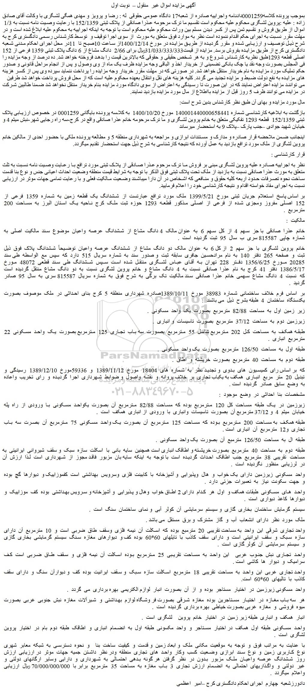 مزایده فروش 2/66 دانگ مشاع از 6 دانگ پلاک ثبتی 1359 فرعی از 152 اصلی قطعه 1293 , مزایده فروش 2/66 دانگ مشاع از 6 دانگ پلاک ثبتی 1359 فرعی از 152 اصلی قطعه 1293