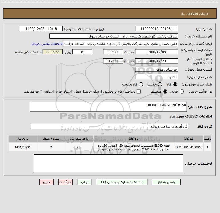 شرح کلی نیاز: BLIND FLANGE 20"#150