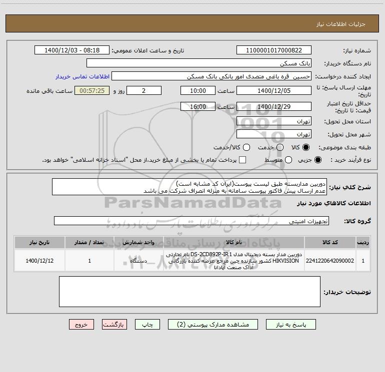 شرح کلی نیاز: دوربین مداربسته طبق لیست پیوست(ایران کد مشابه است)